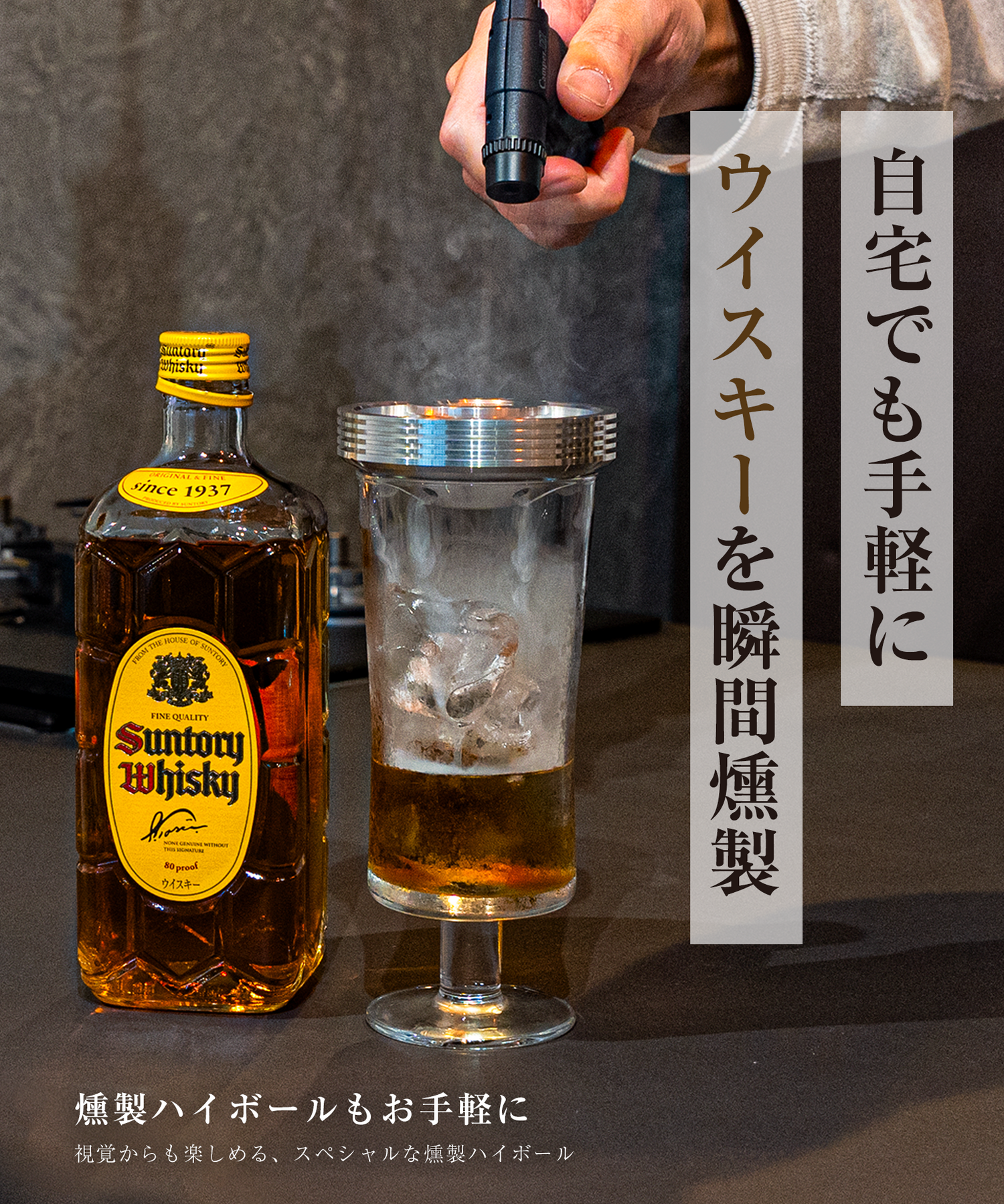燻煙とウイスキーがマッチングする瞬間を「目」で楽しむことができます。長さのあるグラスを使用すれば、エンターテイメント要素も格段にアップ。