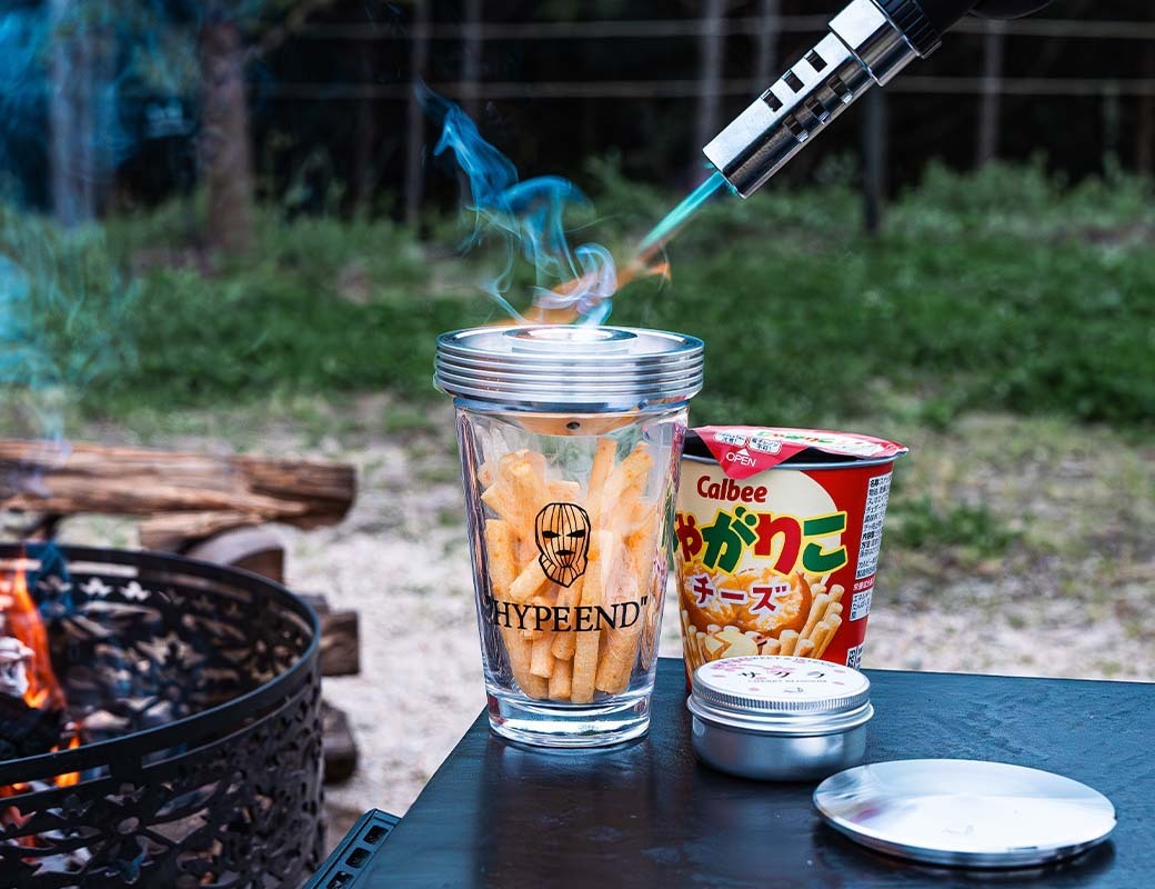 トップキャップを被せるとメインカップのスリットと完全一体化。燻製している時間をより美しく演出。